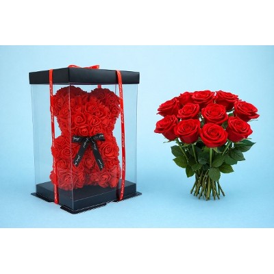 Een mooie foam beer met 10 prachtige rode rozen